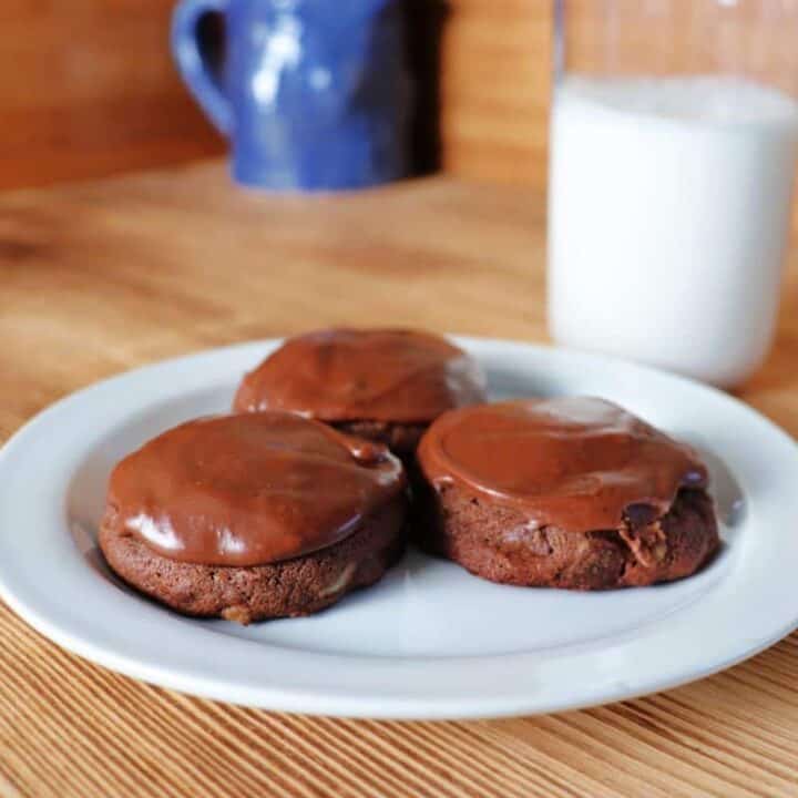 Soft, cake-like cookies with mashed potatoes in the dough for extra moisture, topped with a luscious chocolate malt frosting.