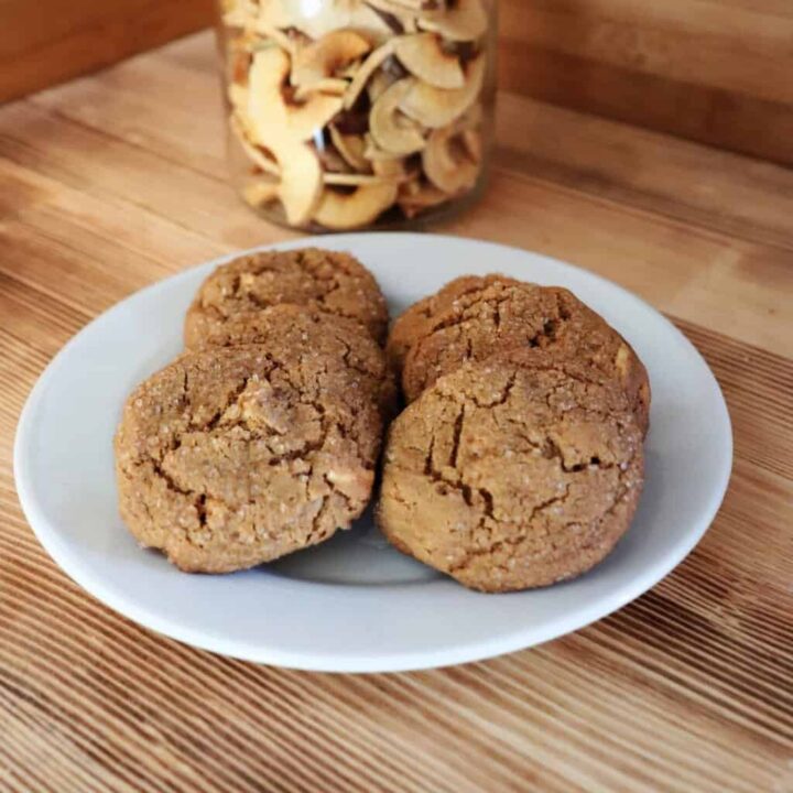 Chewy, molasses cookies full of ginger and apple bits for a lovely sweet, fruity, and spicy treat!